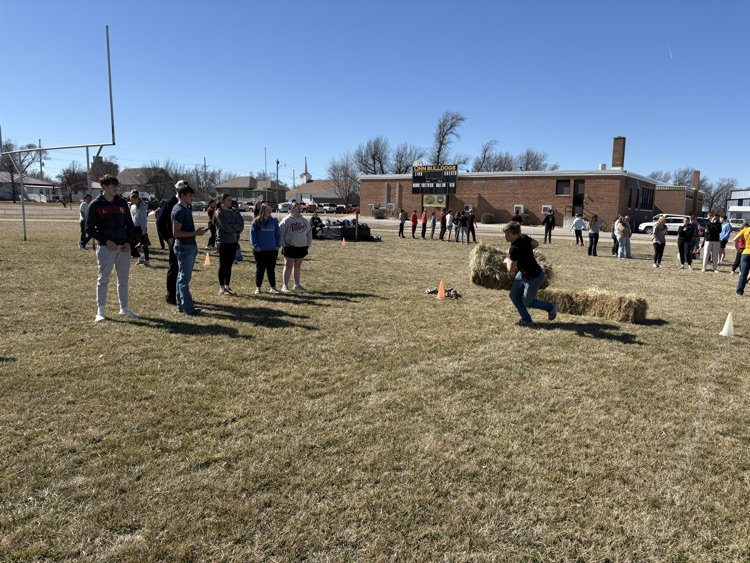 Ag Olympics put the different JH/HS seminar groups together to compete in goat milking, stick horse barrel racing, bake stacking, salt bag relay, calf roping, and dress the farmer. The winning seminar was Mr. Wright's and they will receive a pizza party sponsored by Ohlde Family Farms.
